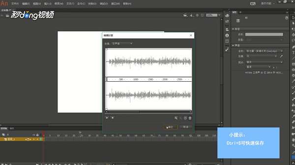 2、把音频文件拖到舞台,打开属性,在时间轴选择包含音频文件的帧,点击右侧的“编辑声音通道”。