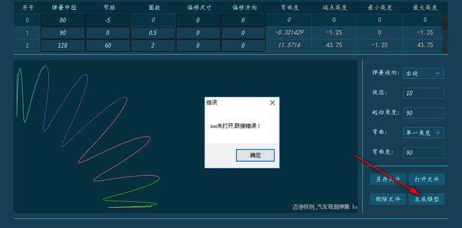 2、可以打开上次保存的弹簧数据直接生成模型