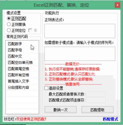 Excel正则匹配提取替换定位工具官方版是一款十分不错的Excel正则匹配提取替换定位工具,Excel正则匹配提取替换定位工具官方版界面小巧美观,功能出色实用,可以帮助大家有效提升使用exsel效率,此外通过Excel正则匹配提取替换定位工具最新版大家还可以快速的对表格中的数据进行提取替换和定位。