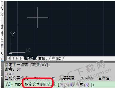 4、输入单行文字。使用快捷键DT,选择您要输入的文字起点。