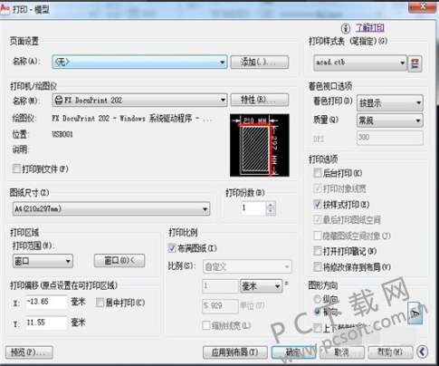 4、在打印设置界面中,在右上角的“打印机样式表”中找到适合的打印样式,在“打印范围”中找到“窗口”,这时候就可以窗口选择打印的图纸。