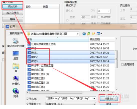 2、在打开的窗口中点击【添加文件】,选择您要转换的AutoCAD2009图纸,选择完成后点击【打开】。