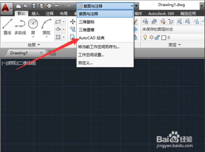 autocad2009视图怎么调整为经典模式?