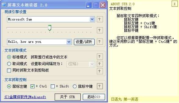 1、借助鼠标来朗读和抓取屏幕中任意地方的文本(比如网页、软件界面、文本编辑器等中的文本),实现文字的即点即读,即选即读。