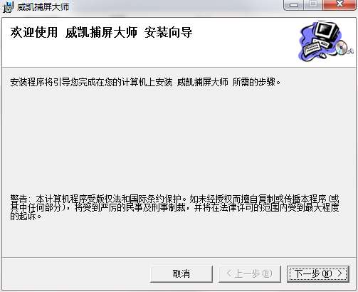 3.双击打开,进入威凯捕屏大师软件界面,点击下一步