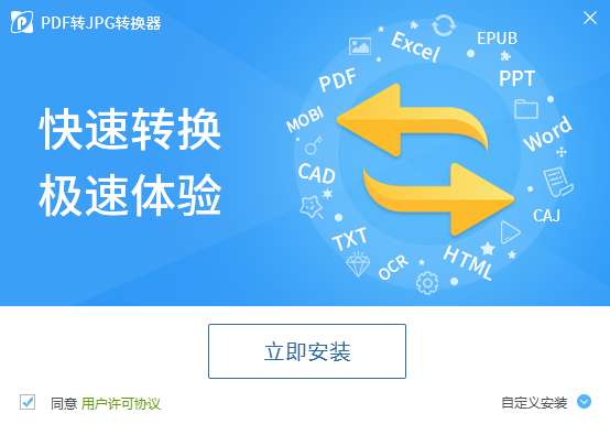 3.双击打开,进入迅捷pdf转jpg转换器软件界面,点击立即安装