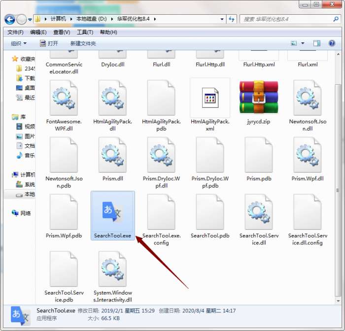 2、找到文件夹中的SearchTool.exe应用程序。