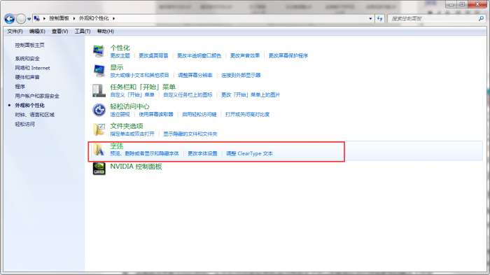 1.进入控制面板,在搜索栏搜索字体,点击进入。