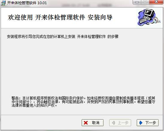 3.双击打开,进入开来体检管理软件界面,点击下一步