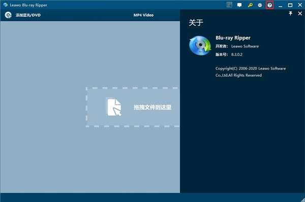 5、双击打开Leawo Blu-ray Ripper,点击红色选框下的关于,如下图软件安装完成,可以放心使用软件。