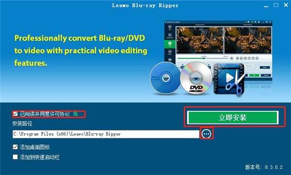 安装向导默认设置的软件默认安装路径为C:\Program Files (x86)\Leawo\Blu-ray Ripper;