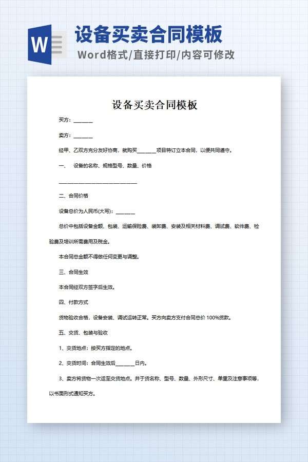 设备买卖合同模板是用来规范双方对于设备买卖流程所提供的范本模板。设备买卖合同模板由PC6为您提供免费下载,源文件为Word格式模板,大家可以直接下载源文件,以便于修改内容。