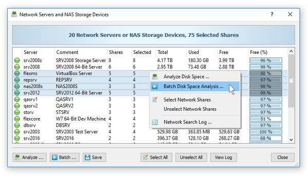 DiskSavvy Server和DiskSavvy Enterprise提供了以下功能:扫描网络,检测所有网络服务器和NAS存储设备,在数百台网络服务器和NAS存储设备上执行一个或多个预先配置的磁盘空间分析命令,并为每个分析的对象生成单独的报告服务器,NAS存储设备或网络共享。