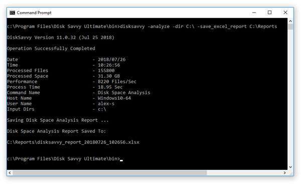 除了DiskSavvy桌面GUI应用程序之外,IT管理员还提供了一个命令行实用程序,使该人员可以执行磁盘空间分析操作,保存磁盘空间使用情况报告并将磁盘空间分析结果导出到SQL数据库。DiskSavvy命令行实用程序可用于自动执行磁盘空间分析操作,并将磁盘空间分析功能集成到用户自定义批处理文件和Shell脚本中。