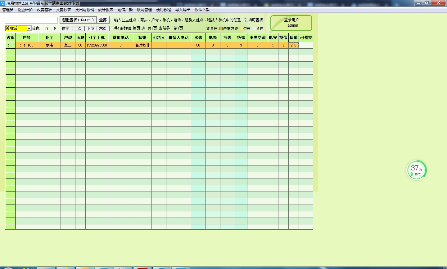 3、查询功能,可以在这里输入小区的名字,也可以输入业主的名称,显示的信息如图所示,提示您需要缴费的数额