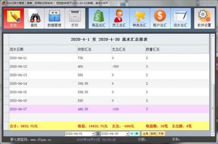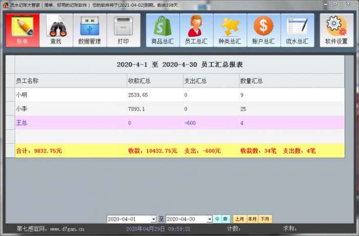 6、【打印报表】软件可以按照设定的时间段,打印需要的报表和汇总报表。