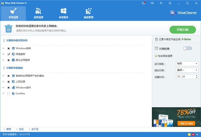 wise disk cleaner拥有先进的硬盘扫描算法,所以扫描垃圾的速度非常快。
