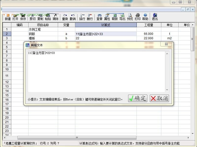 5、在明细表单元格文本时,可以使用快捷键F2键弹出编辑文本窗口编辑文本,以方便单元格文本较多时使用(编辑完成后,记得按F5键刷新表格数据),功能截图如下所示: