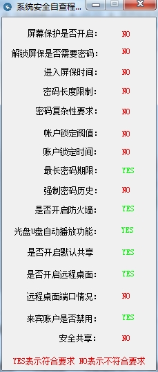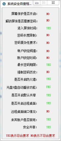 二、YES表示符合要求,NO表示不符合要求,接下来就只需要将NO的一些问题修改即可提升电脑安全。