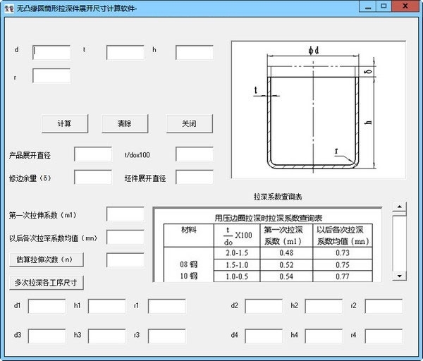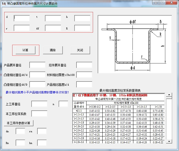 圆筒状拉伸零件展开计算工具在windows XP/7/8等多个系统上均有测试,可全功能使用。