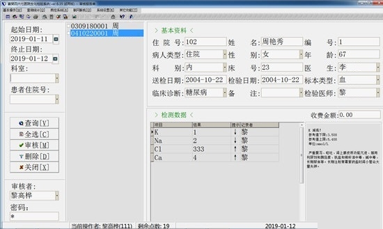 生化数据录入窗口,功能特色:可以按项目快速录入。图片中的操作是这样的,