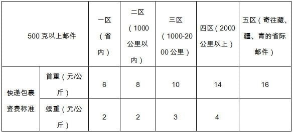 省内5元/件,省际8元/件,寄往西藏、青海和新疆省(自治区)的省际邮件12元/件。