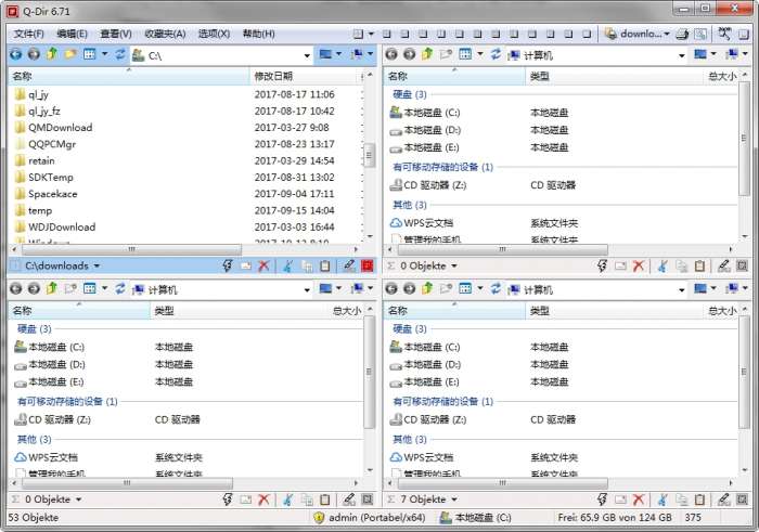 Q-Dir是一款独特、非常好用的资源管理器,特别适用于频繁在各个目录间跳跃复制粘贴的情况,因为,它有4个窗口!每个窗口都可以方便的切换目录,以不同颜色区分不同类型的文件,各窗口之间可以方便的拖放操作互相的文件。