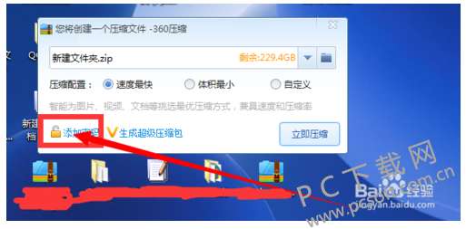 5、下一步返回上一个页面,再点击【立即压缩】,就可以得到一个压缩包了。注意:解压时要输入密码才能解压哦!千万要记住密码哦!
