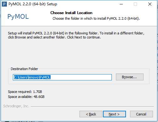 5、选择软件需要安装的目录,默认位置“C:ProgramDataPyMOL”,建议安装D盘,点击Next;