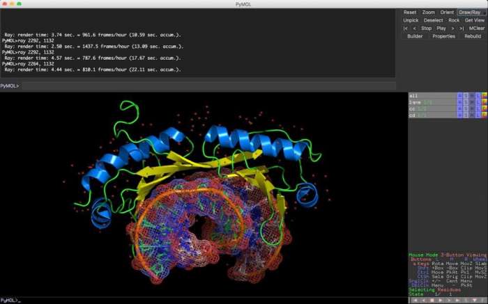 借助此分子可视化系统,可以以3D模式对蛋白质,其密度,轨迹和表面进行细微分析