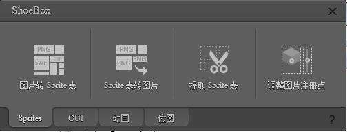 这个功能非常强大。我们在游戏制作中,经常利用TexturePacker等工具,将一些碎图图片合成一个精灵表单(spritesheet),好处不言而喻。ShoeBox的这个功能,在一些方面并没有TP工具那么强大,但却有自己的特色功能。TA可以将多个图片,SWF(AS1,AS2,AS3版本)动画或者GIF动画合成到一个纹理图上,强大吧,支持SWF/GIF哦。