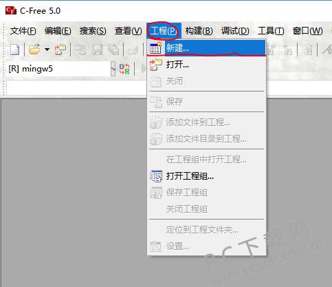 1、打开在本站安装好的C-Free软件,打开软件后点击软件上方菜单栏的【工程】选项。