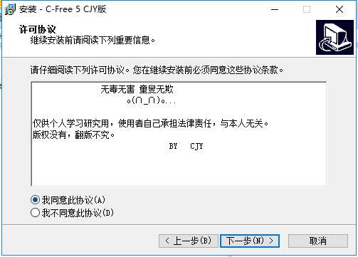 2、进入C-Free安装许可协议界面,您可以先阅读先以中的内容,阅读完成后,点击“我同意此协议”然后点击【下一步】。