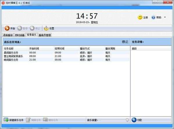 6、可分别设置音乐定时播音节目单和语音的定时播音节目单,且音乐和语音自动匹配,令整个商场音乐不断、气氛不歇