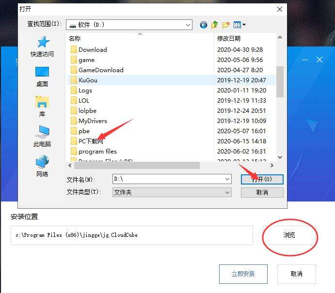 2、点击“自定义安装”进入安装位置选择界面,软件默认安装位置为“c:Program Files (x86)jinggejg.CloudCube”,小编建议点击“浏览”选择C盘以外的磁盘安装