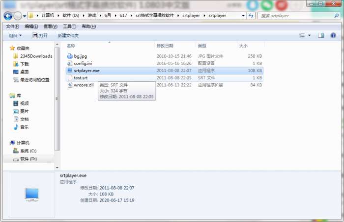 2.解压srtplayer软件,运行“EXE.文件”