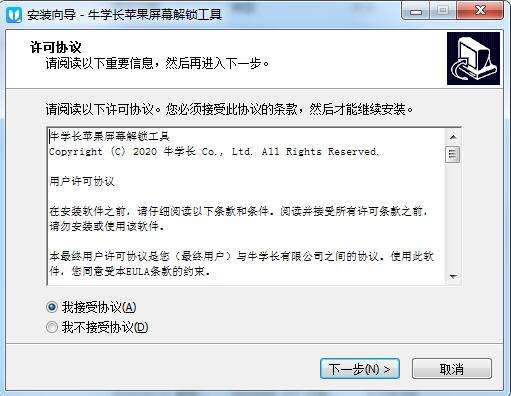牛学长苹果屏幕解锁工具中文版正在安装,耐心等待一下