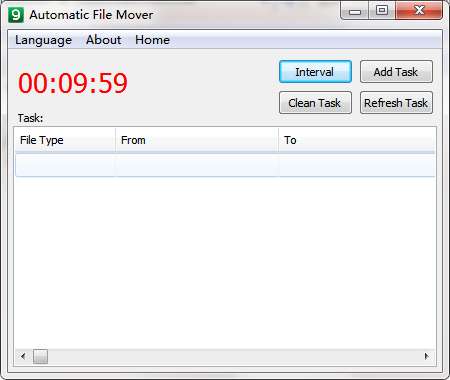 打开文件自动转移工具,首先点击language-简体中文,修改成中文,然后增加任务,选择时间间隔。