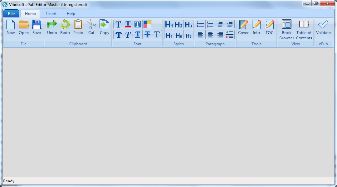 在计算机上下载并安装Vibosoft ePub Editor Master官方版后,双击打开它,然后将目标ePub电子书或文件导入程序,如下所示:单击“打开文件”选项浏览并打开要编辑的ePub电子书,或者直接将ePub文件拖放到软件中。