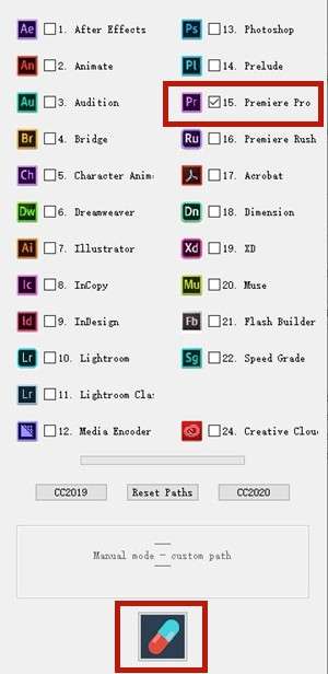3、选择对应的软件,我们这里是Premiere pro,然后点击破解;