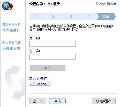 这里可以登录谷歌系列产品的用户账户,如果没有账户可以注册一个,如果已经有了账户,就在这里登录一下,以后走到哪里只要登陆一下,就能享用自己的输入习惯和自定义短语和词库,非常方面。