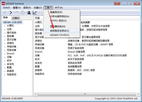 2、选择【系统稳定性测试】,这个功能就是我们需要进行的烤机功能 了。