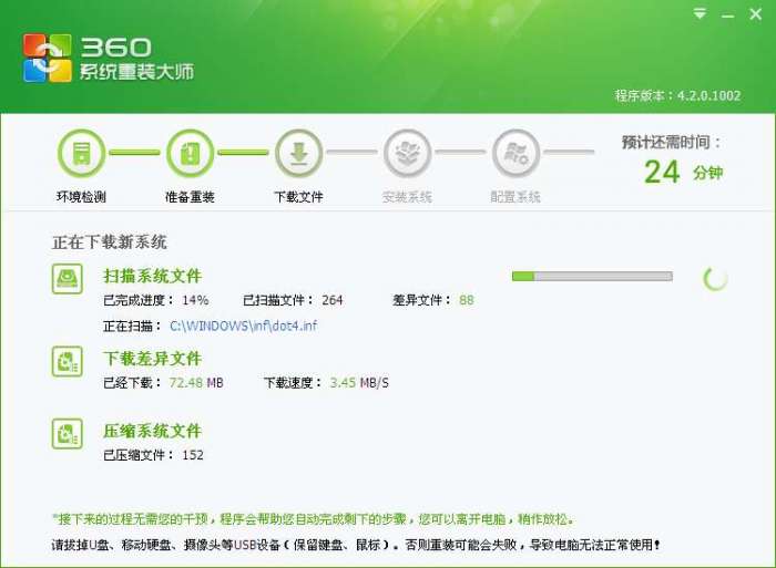 重装正式开始后便开始比对下载文件,您将会看到以下界面: