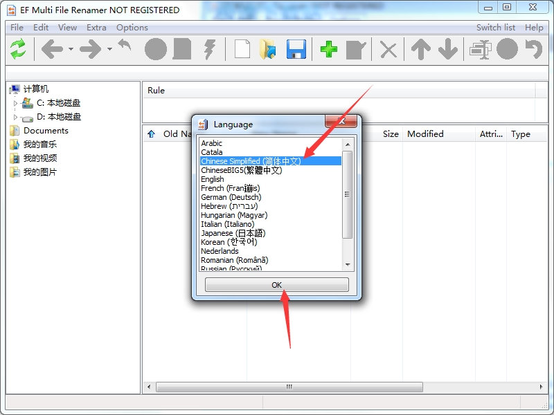 语言更换成功,成功将EF Multi File Renamer的软件语言设置成简体中文
