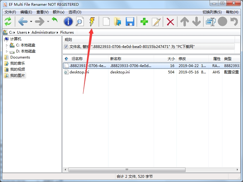 文件重命名规则设置成功,这时候我们就可以在EF Multi File Renamer的主界面的规则框中看到刚刚设置的文件重命名规则。点击EF Multi File Renamer主界面顶部功能栏中的执行按钮,就可以将文件夹中的文件进行重命名;