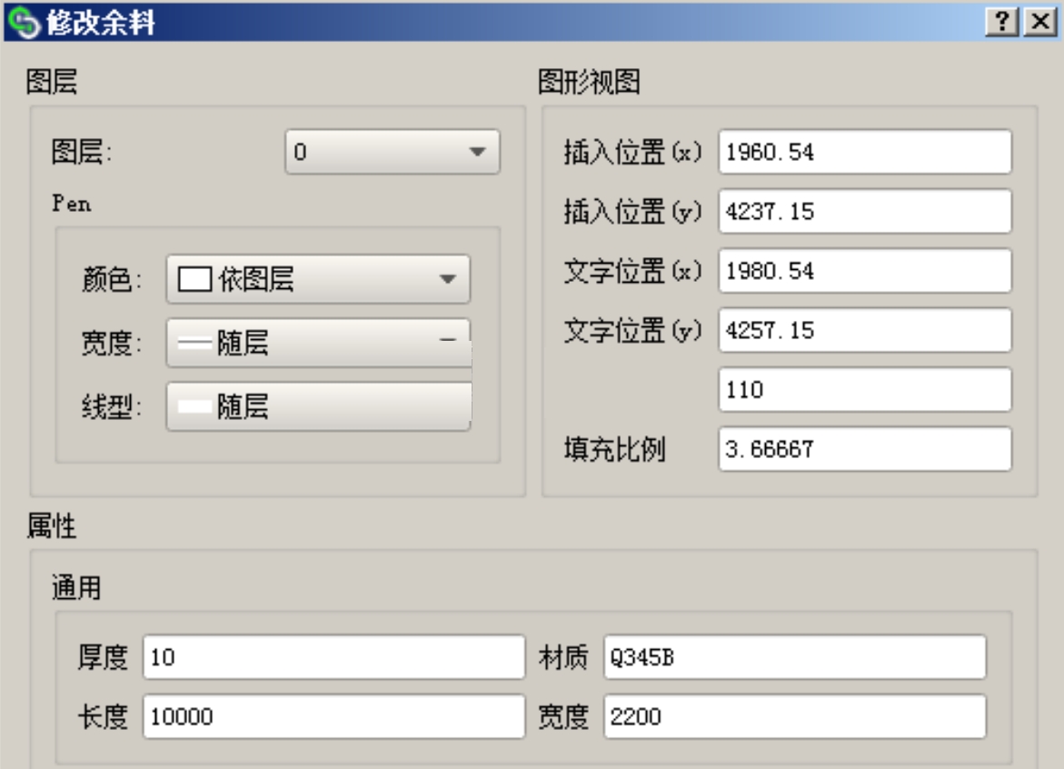 操作步骤:双击要修改的余料图形,随后弹出对话框,出现如下图所示