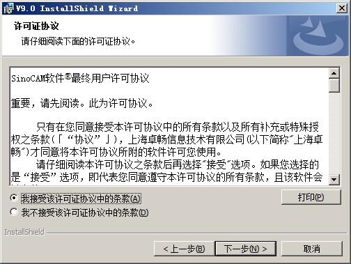 1、双击“SinoCAM V9.0-Trial setup-Win-64bit.exe”进入到软件安装向导
