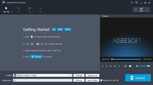 如今,4K视频播放器不如4K视频流行,大多数电视机,手机和平板电脑都支持高达1080p的高清。Aiseesoft 4K converter是转换4K视频的最佳视频转换器。它可以将4K视频转换为1080p、720p高清或标清视频,以便在更多设备上欣赏它们。您也可以将高清/标清视频升级到4K视频。