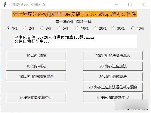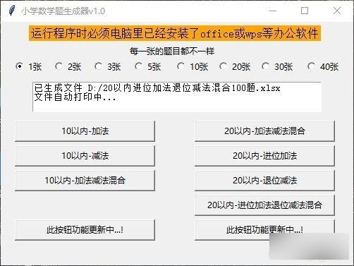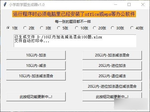 只要点一下你需要的题目按钮,就会立刻全自动打印出来,一键打印就是爽。