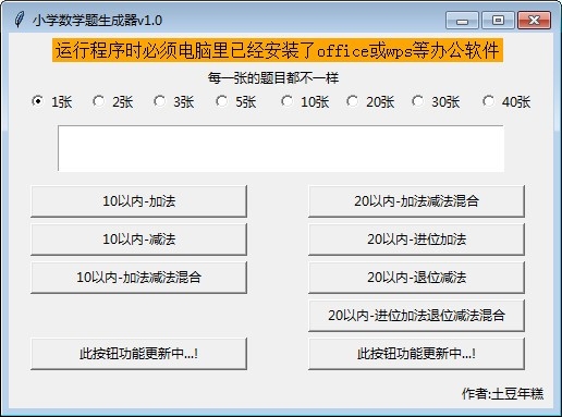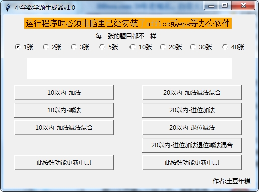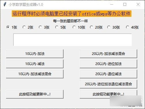 小学数学题生成器官方版是一款功能十分出众的数学题生成工具,小学数学题生成器官方版不仅体积不大,操作也是十分简单的,用户只需要打开小学数学题生成器绿色版,然后点一下你需要的题目按钮,软件就能够立刻全自动打印出来,非常的好用,省时省力。